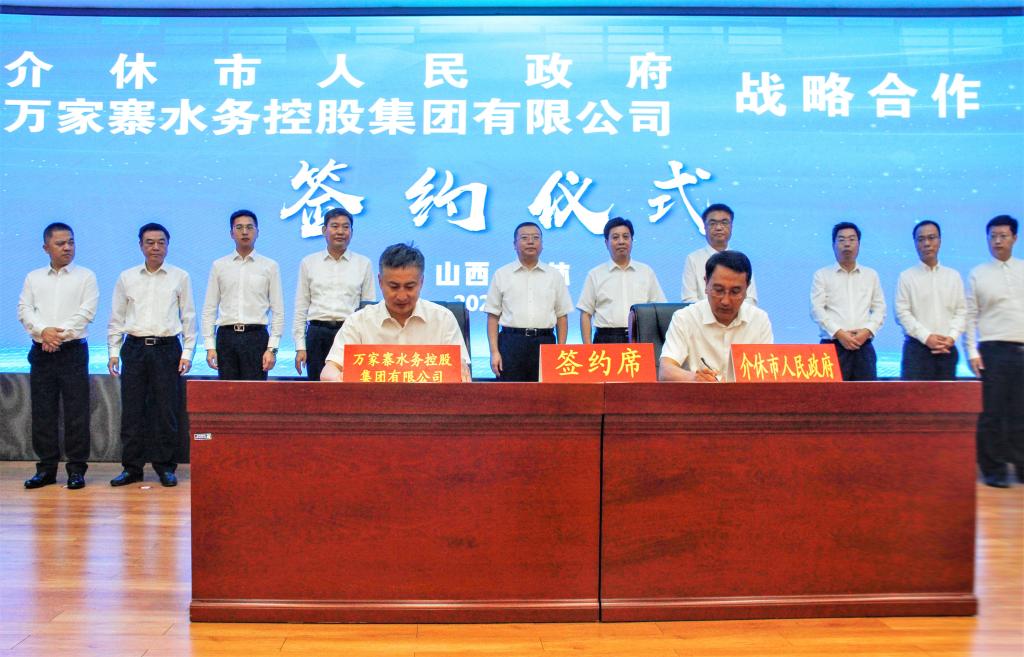 曹池在儀式上介紹了水控集團基本情況和與介休市戰略合作項目情況。當前,集團上下同心,正在加快打造全產業鏈綜合水務投資運營商和具有行業領軍力的水務旗艦勁旅,確保落實省委、省政府賦予水控集團“為全省的水利發展提供優質水資源、優良水生態、優美水環境、高效水服務”的重要使命。水控集團將大力支持介休市水利生態建設,加快大小水網的建設,將東山供水、中部引黃的優質水源送到介休,以滿足當地工業、農業及城市的用水需求,為當地經濟社會的轉型發展提供有力的水支撐和水保障;同時通過簽訂戰略合作協議,雙方盡快推動成熟的項目落地,加快實施建設精品工程,讓介休人民早日受益。