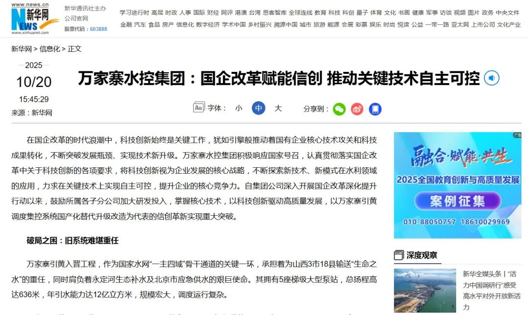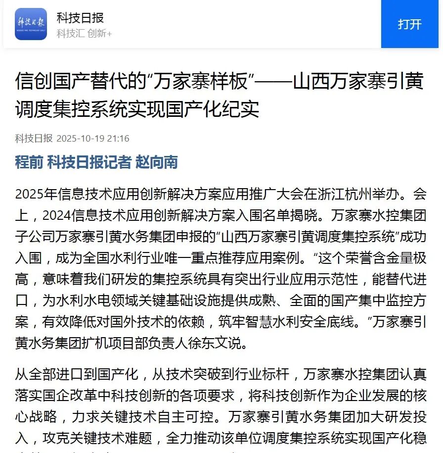 近日,新華網、科技日報、中國水利報、工人日報等多個國家級媒體將鏡頭對準萬家寨水控集團,聚焦國企改革信創工作,通過多維度、多篇幅、深層次報道,重點展現企業將科技創新作為高質量發展的核心戰略,持續提升核心競爭力的實踐成效。