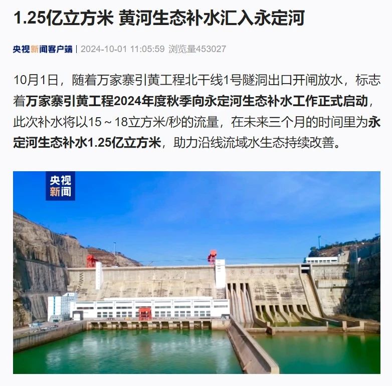 截至2024年9月末,萬家寨引黃工程累計為永定河輸水12.3億立方米,已成為向永定河生態(tài)補水的主力軍,為首都供水安全、實現(xiàn)永定河全流域綜合治理和生態(tài)修復提供了重要的水資源保障。