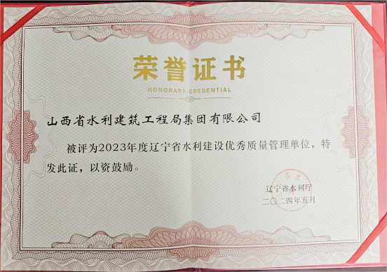 近日,水工局集團榮獲“2023年度山西省優秀建筑業企業”“2023年度遼寧省水利建設優秀質量管理單位”兩項榮譽。