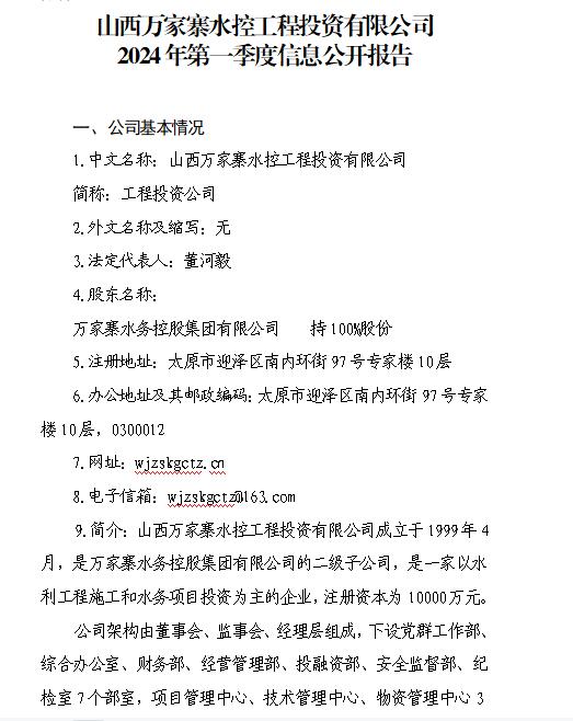 山西萬家寨水控工程投資有限公司
