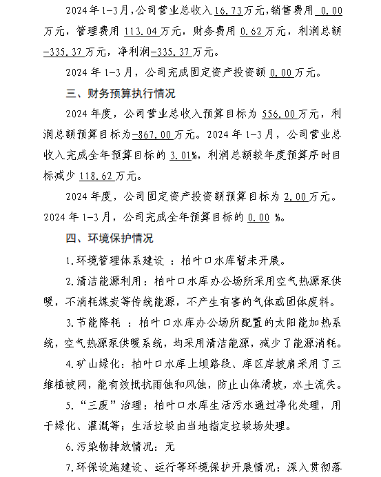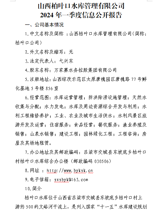 山西汾河水庫管理有限公司2024年第一季度信息公開...