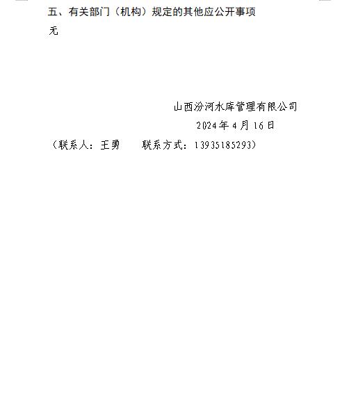 山西柏葉口水庫管理有限公司2024年一季度信息公開...