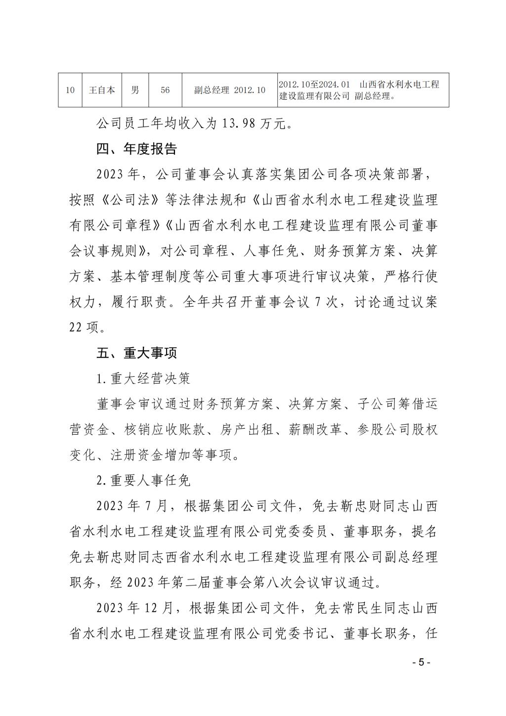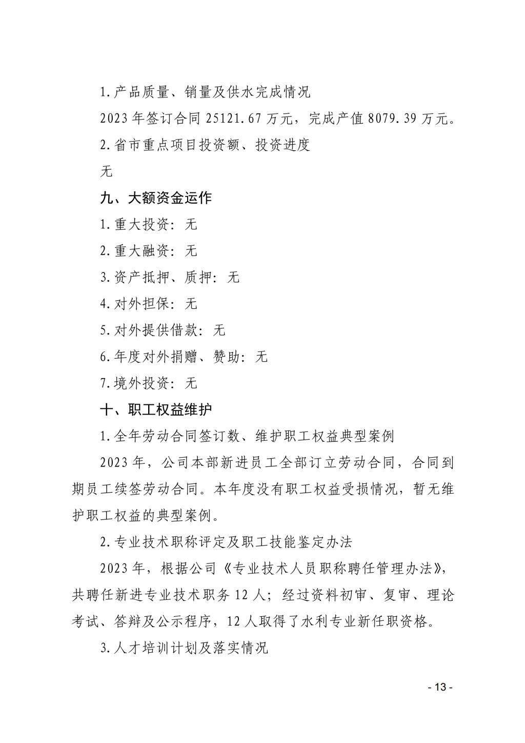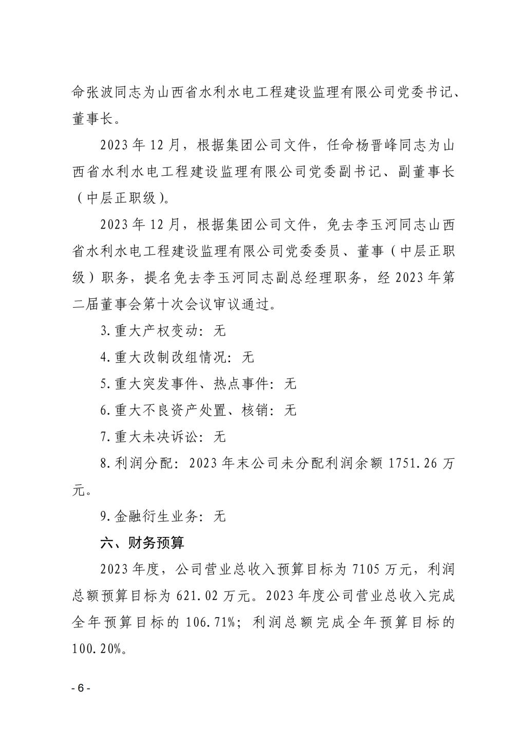 山西中部引黃水務集團有限公司2023年度重大信息公...