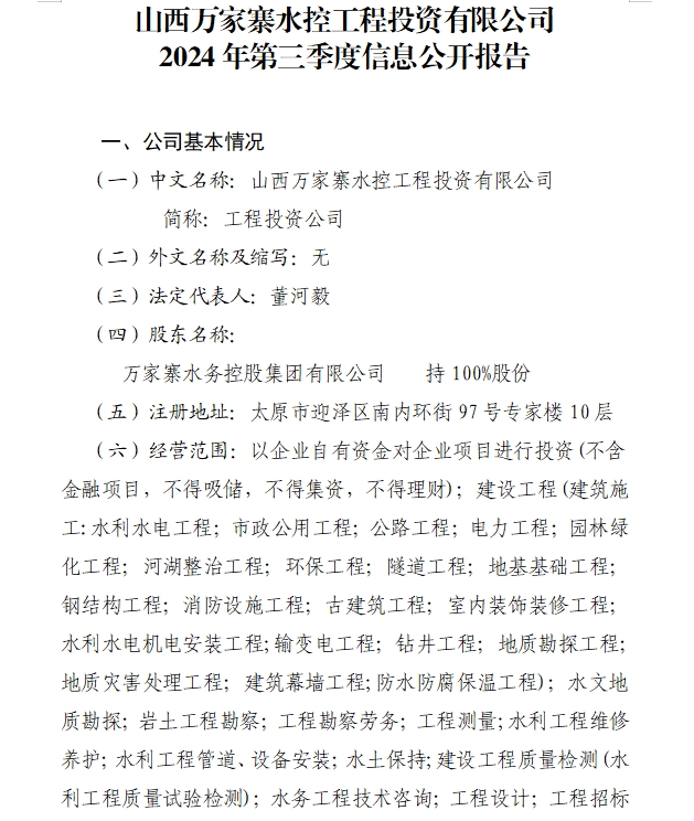 山西萬家寨引黃水務集團有限公司2024年第三季度信...