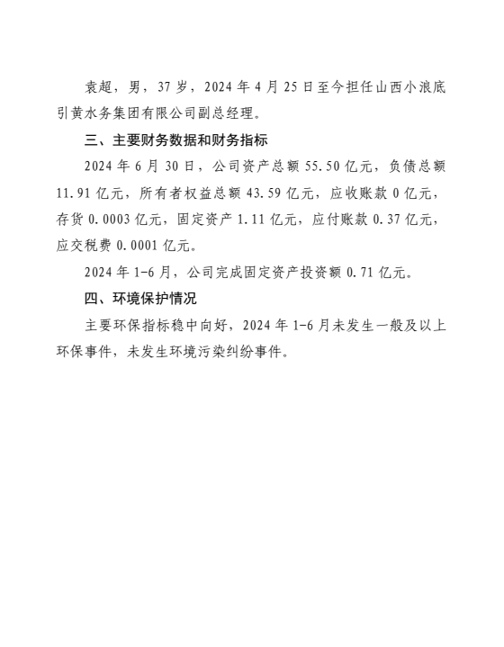 山西小浪底引黃水務集團有限公司2024年第三季度信...