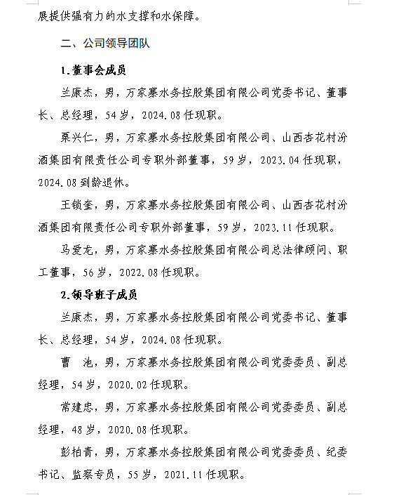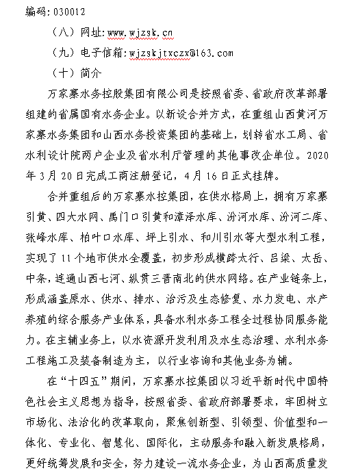 萬家寨水務控股集團有限公司2024年中期財務等重大...