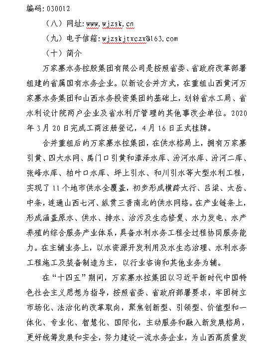 萬家寨水務(wù)控股集團有限公司