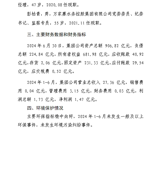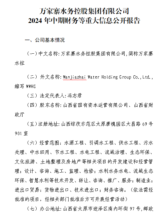 萬家寨水務(wù)控股集團有限公司2024年三季度財務(wù)等重...