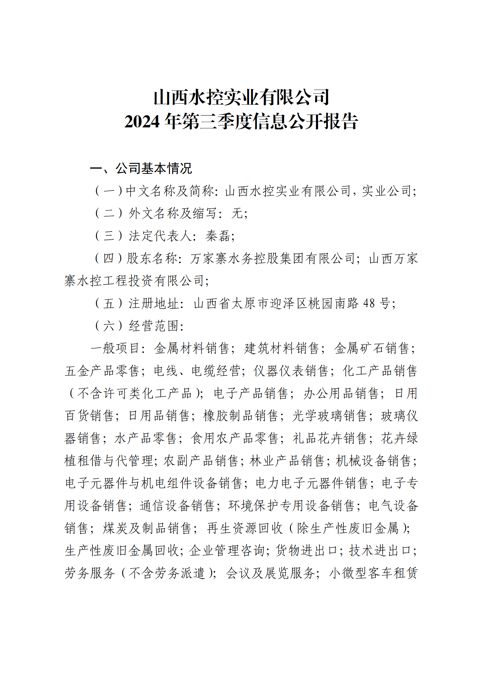 山西水務工程建設監理有限公司2024年第三季度財務...