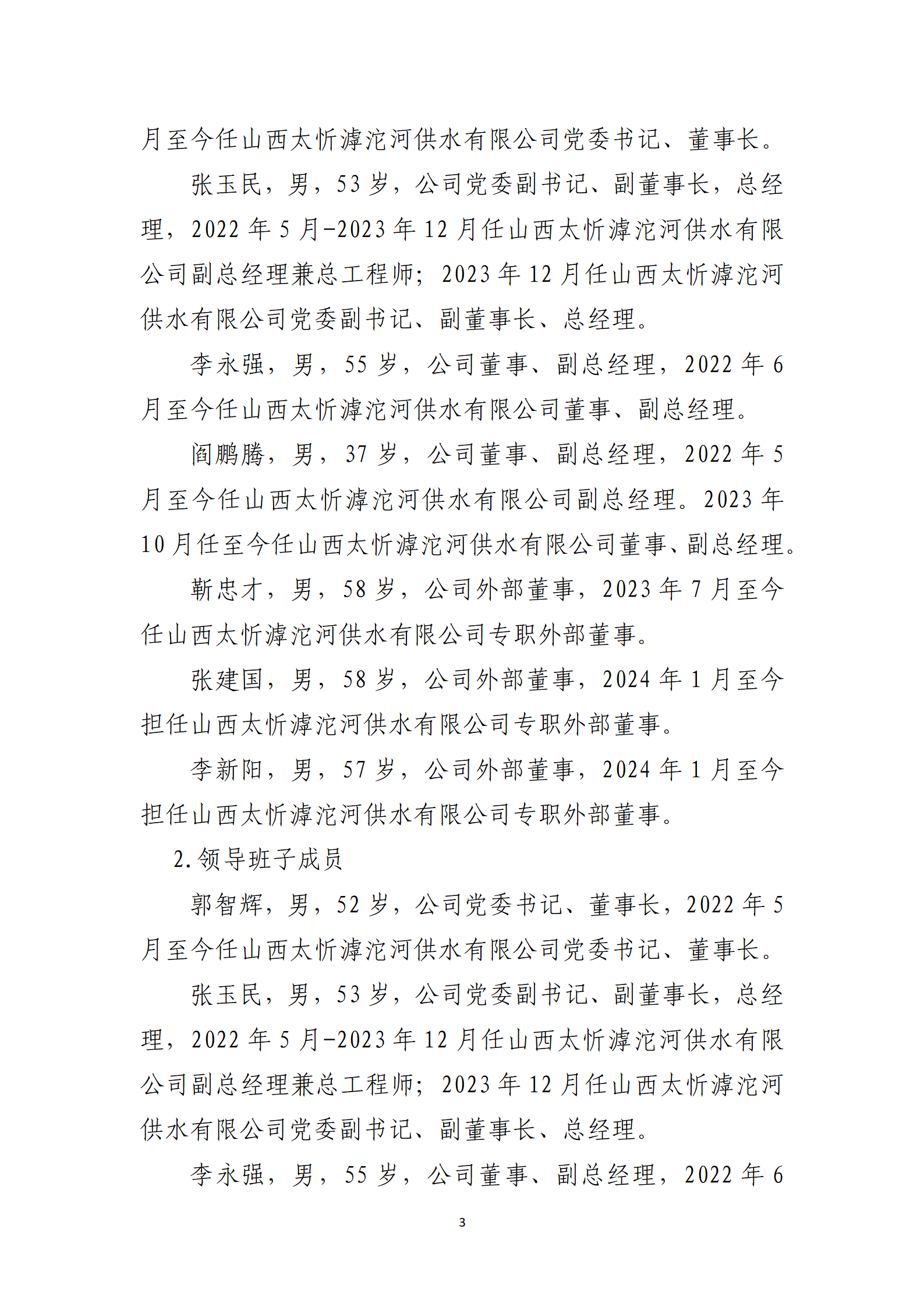 山西中部引黃水務集團有限公司2024年第三季度信息...