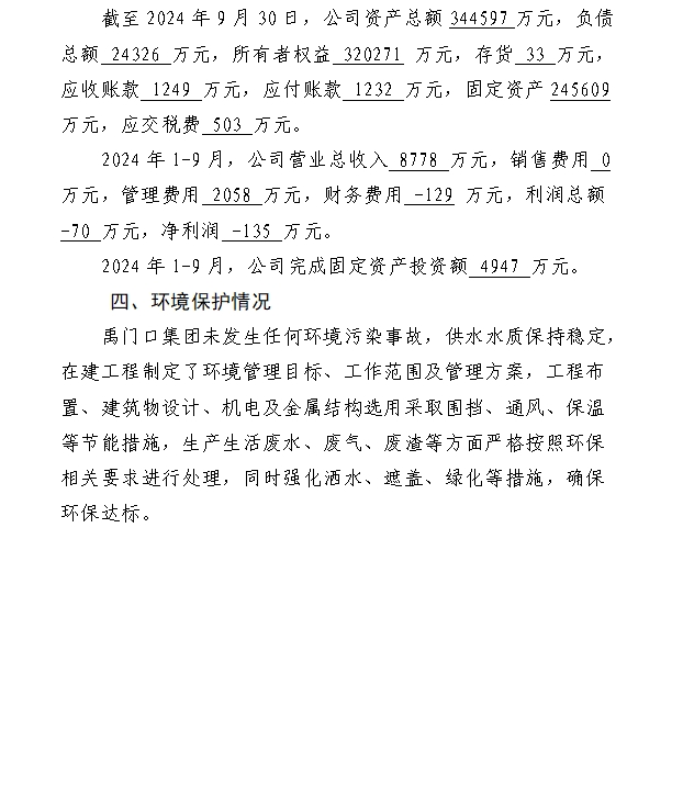 山西滹沱河管理有限公司2024年三季度信息公開報告