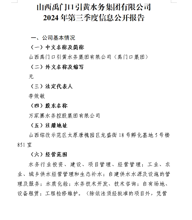 山西汾河水庫管理有限公司2024年第三季度信息公開...