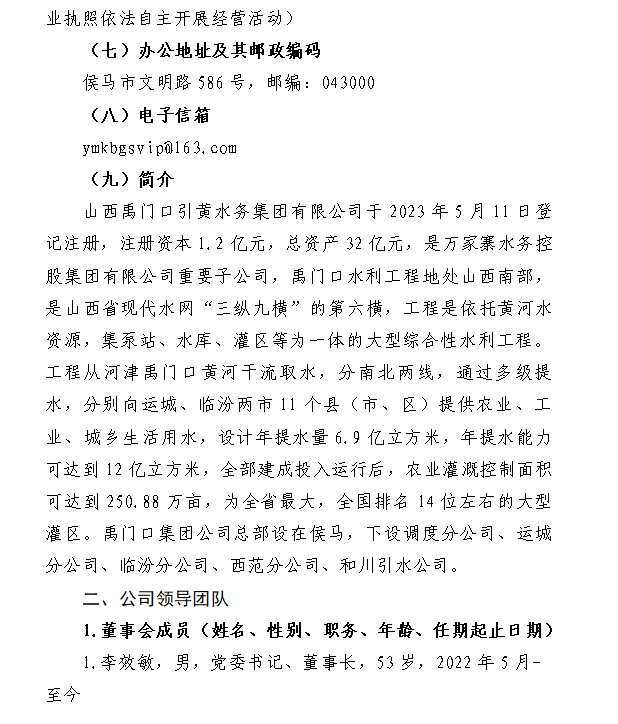 山西禹門口引黃水務集團有限公司