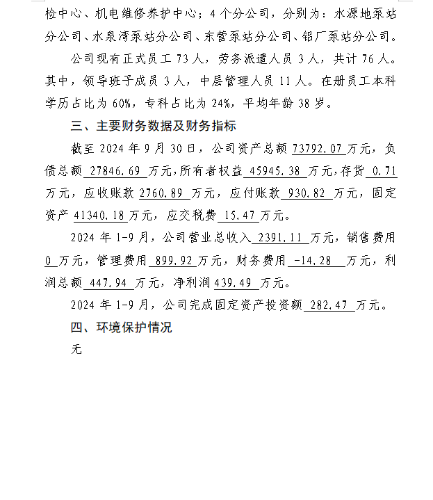 山西禹門口引黃水務集團有限公司2024年第三季度信...