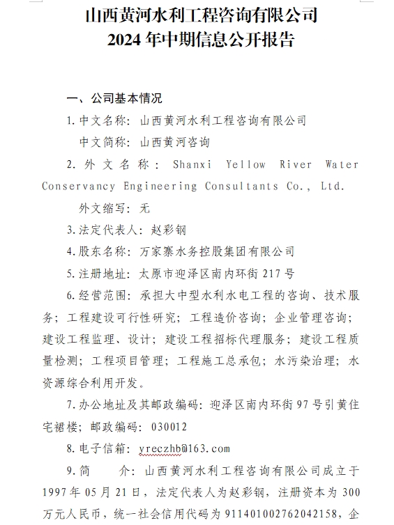 山西省水利水電工程建設監理有限公司2024年第三季...