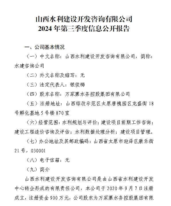 山西省水利水電工程建設(shè)監(jiān)理有限公司2024年第三季...