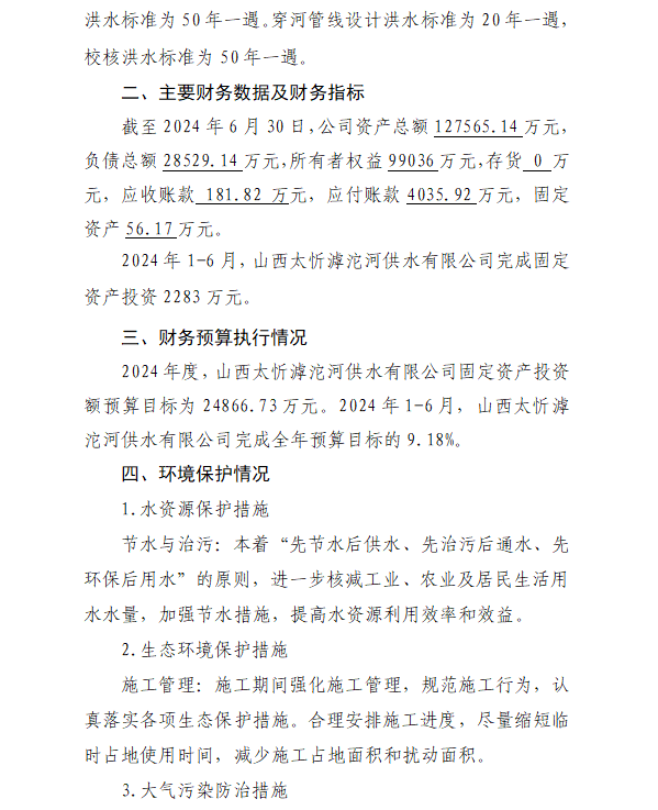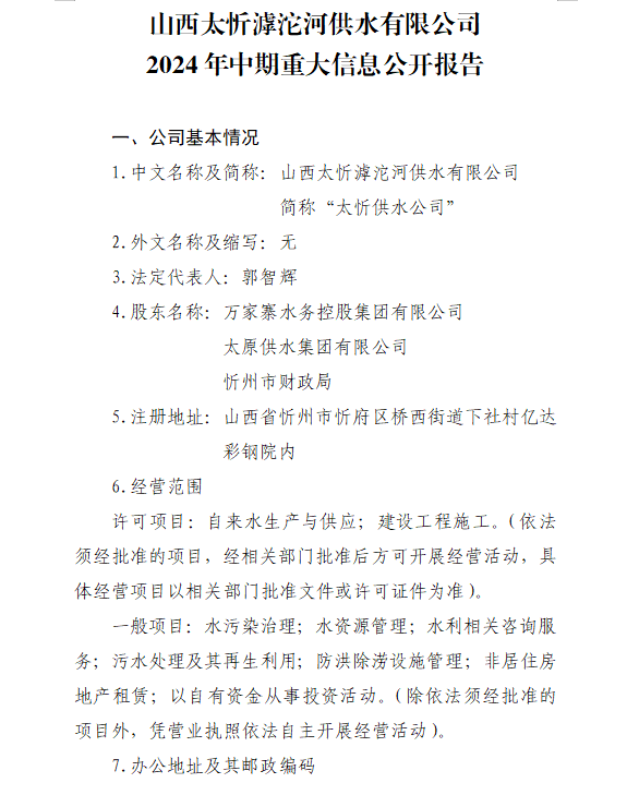 山西沁河水務集團有限公司2024年第三季度信息公開...