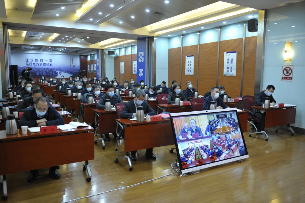會議以視頻形式召開,設1個主會場和2個分會場。集團公司領導班子成員曹池、蔡開東、常建忠,總會計師曹志剛,外部董事白雷、張秀山,紀委副書記,各部室、中心主要負責人,受表彰單位代表、黨建述職黨組織書記以及簽訂2022年度經營業績責任書、基層黨組織落實全面從嚴治黨主體責任目標責任書和安全生產目標責任書單位代表在主會場參加會議;水資源公司、禹門口集團公司班子成員,集團紀委各室主任,水工局公司和設計院公司紀委書記,各子公司主要負責人通過視頻在分會場參加會議。