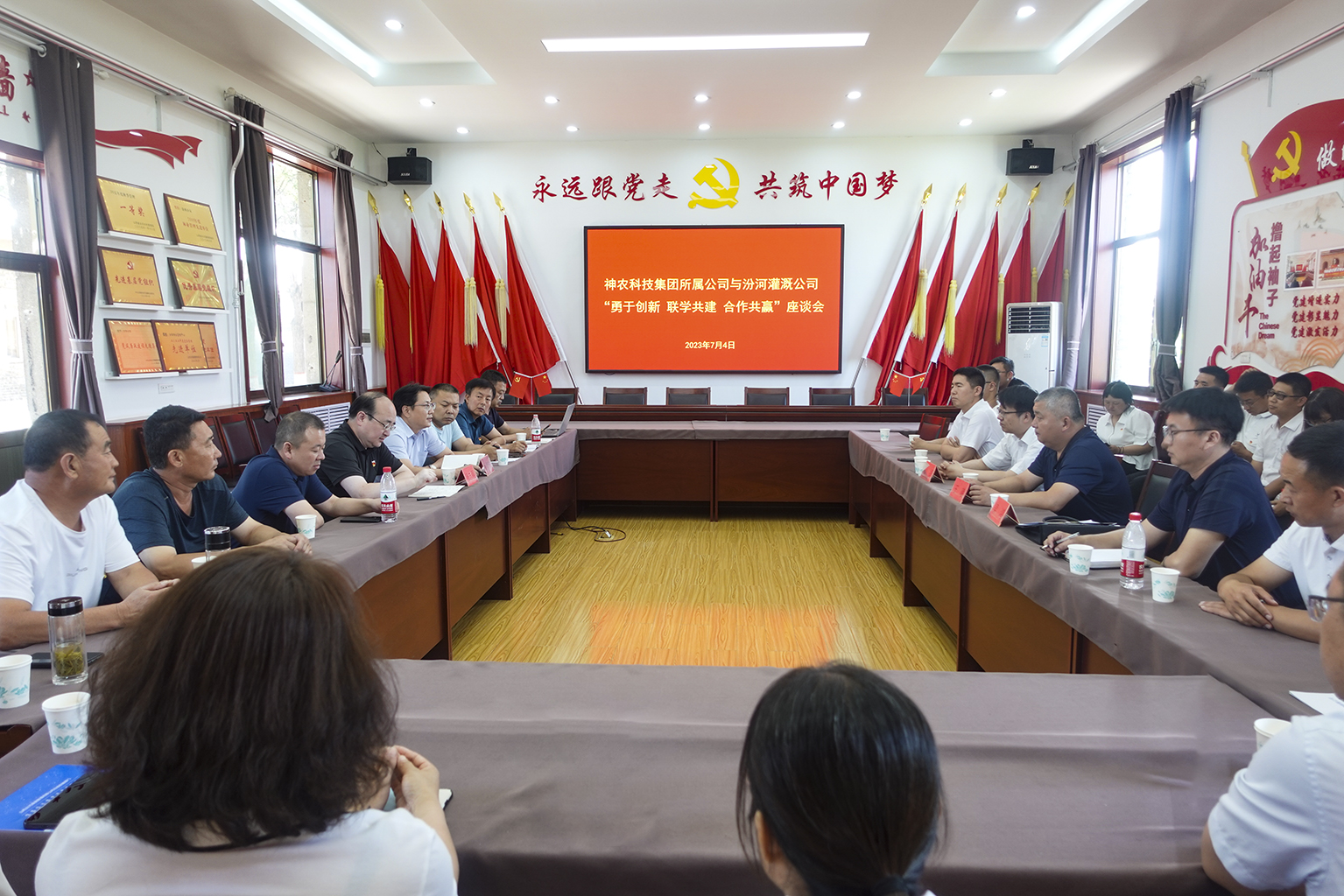 7月4日,山西汾河灌溉管理有限公司與神農科技集團所屬神農農機集團、神農漁業公司、神農薯業公司聯合開展“勇于創新、聯學共建、合作共贏”主題黨日活動,赴汾東供水管理中心東二支管理所、科研服務中心、汾西供水管理中心等地,現場觀摩了汾河灌溉公司一體化閘門、測坑試驗區、農業氣象觀測場、地下測坑和試驗田,調研公司“一支部一品牌”創建,參觀了東二支黨小組學習陣地。