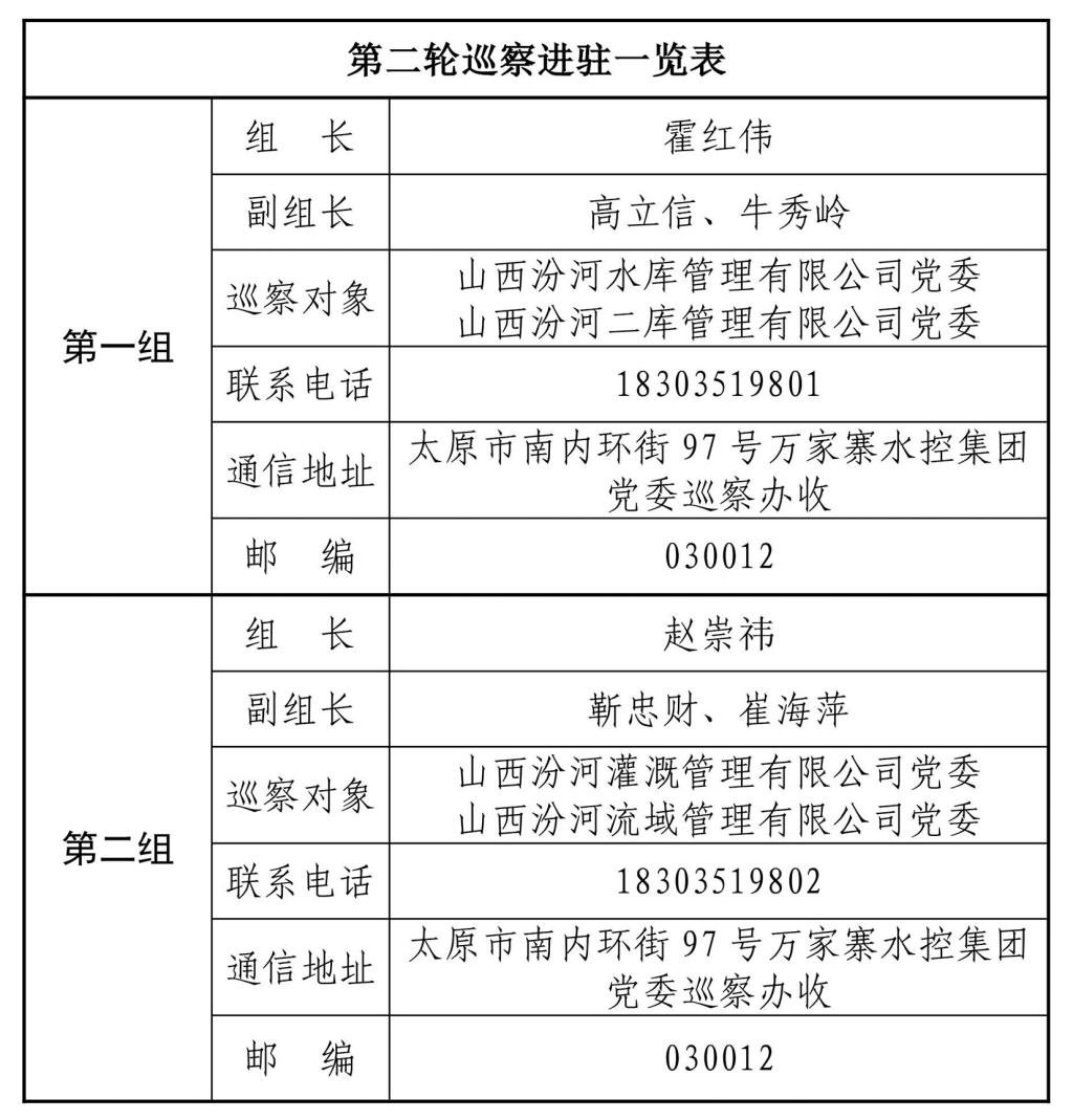 根據(jù)萬家寨水控集團(tuán)黨委統(tǒng)一部署,2月14日,集團(tuán)黨委兩個巡察組已完成對汾河水庫黨委、汾河二庫黨委、汾河灌溉公司黨委、汾河流域公司黨委的進(jìn)駐。