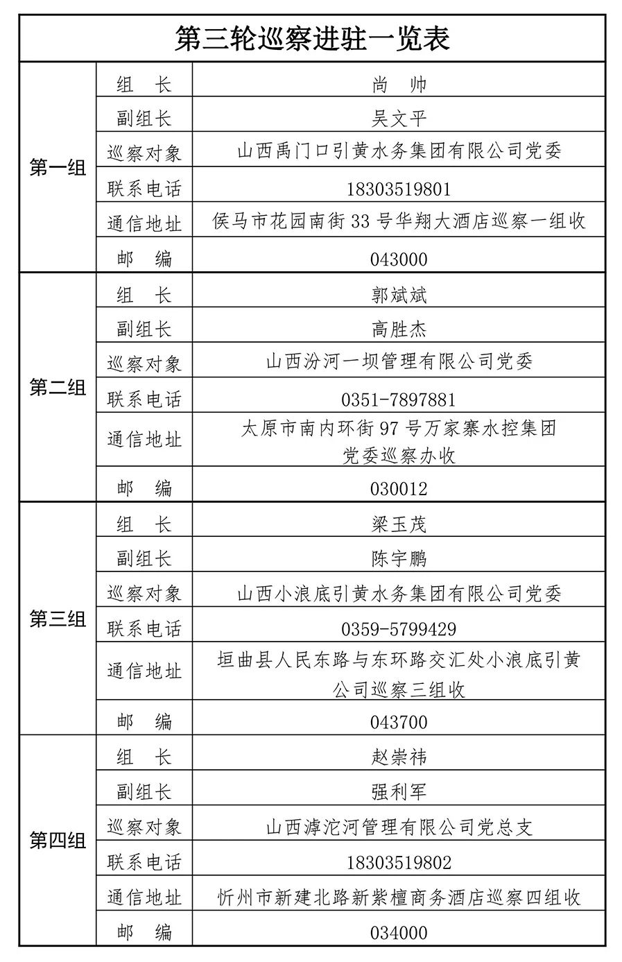 集團黨委巡察組工作時間為7月10日至8月28日,巡察期間設立專門聯系電話、來訪接待、巡察意見箱、通信地址,受理涉及被巡察單位相關問題的來信來電來訪。巡察組每天受理時間為8:00至17:30,巡察受理時間截至8月28日中午12:00。